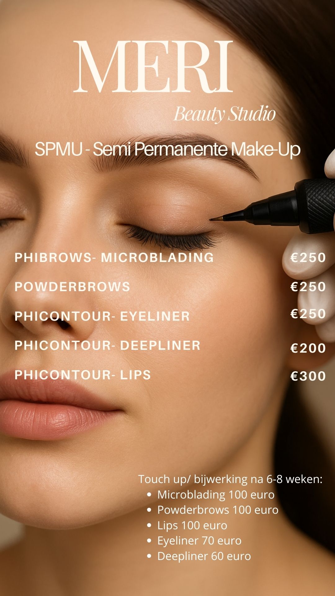 Laat je natuurlijke schoonheid stralen met onze semi-permanente make-up! Kies voor perfect gevormde PhiBrows of Powderbrows voor een volle, symmetrische look die wekenlang blijft. Accentueer je blik met een subtiele eyeliner of deepliner, of geef je lippen een frisse, verzorgde kleur met PhiContour Lips. Elke behandeling wordt met uiterste precisie uitgevoerd voor een natuurlijk, langdurig resultaat. Elke dag wakker worden met een verzorgde look, zonder moeite!